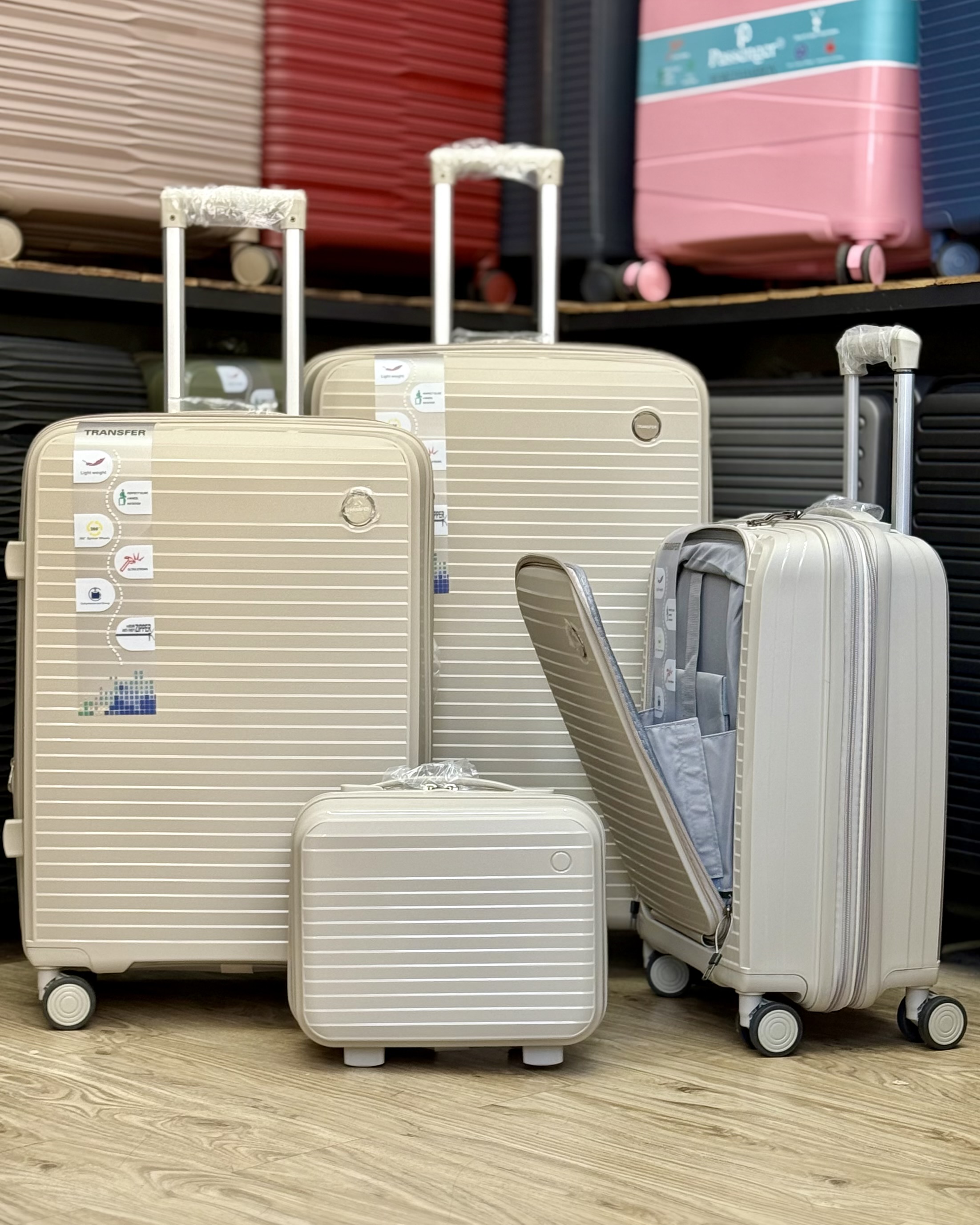 آپشن: زیپ دوبل | زیپ افزایش حجم | جای لبتاپ برای سایز کوچک(کابین) | قفلtsa007 بین الملل | جای لباس خیس | بدنه پ پ (پلی پروپلین) ۱۰۰٪ نشکن | چهار چرخ دوبل ۳۶۰درجه سوپر سایلنت مغزی فلز